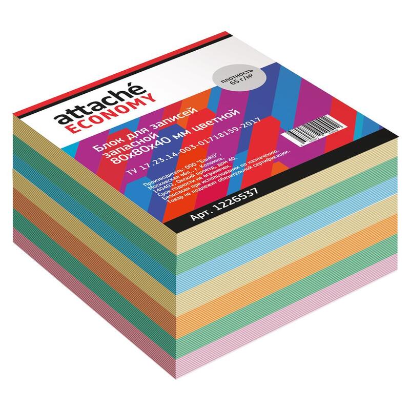Блок для записей Attache 80x80x40 мм разноцветный (плотность 65 г/кв.м)