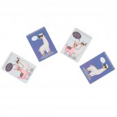 Бумажный блок изготовлен из офсетной бумаги, а переплет из картона. Разметка страниц - в клетку. Блокнот скреплен спиралью. Переплет украшен изображениями модных лам в солнечных очках.