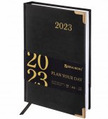 Ежедневник датированный 2023 А5 138x213 мм BRAUBERG "Senator", под кожу, черный - удобный и стильный ежедневник подойдет для любого человека и под любой интерьер