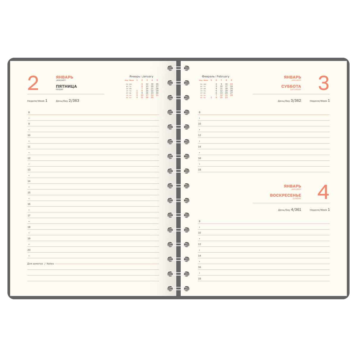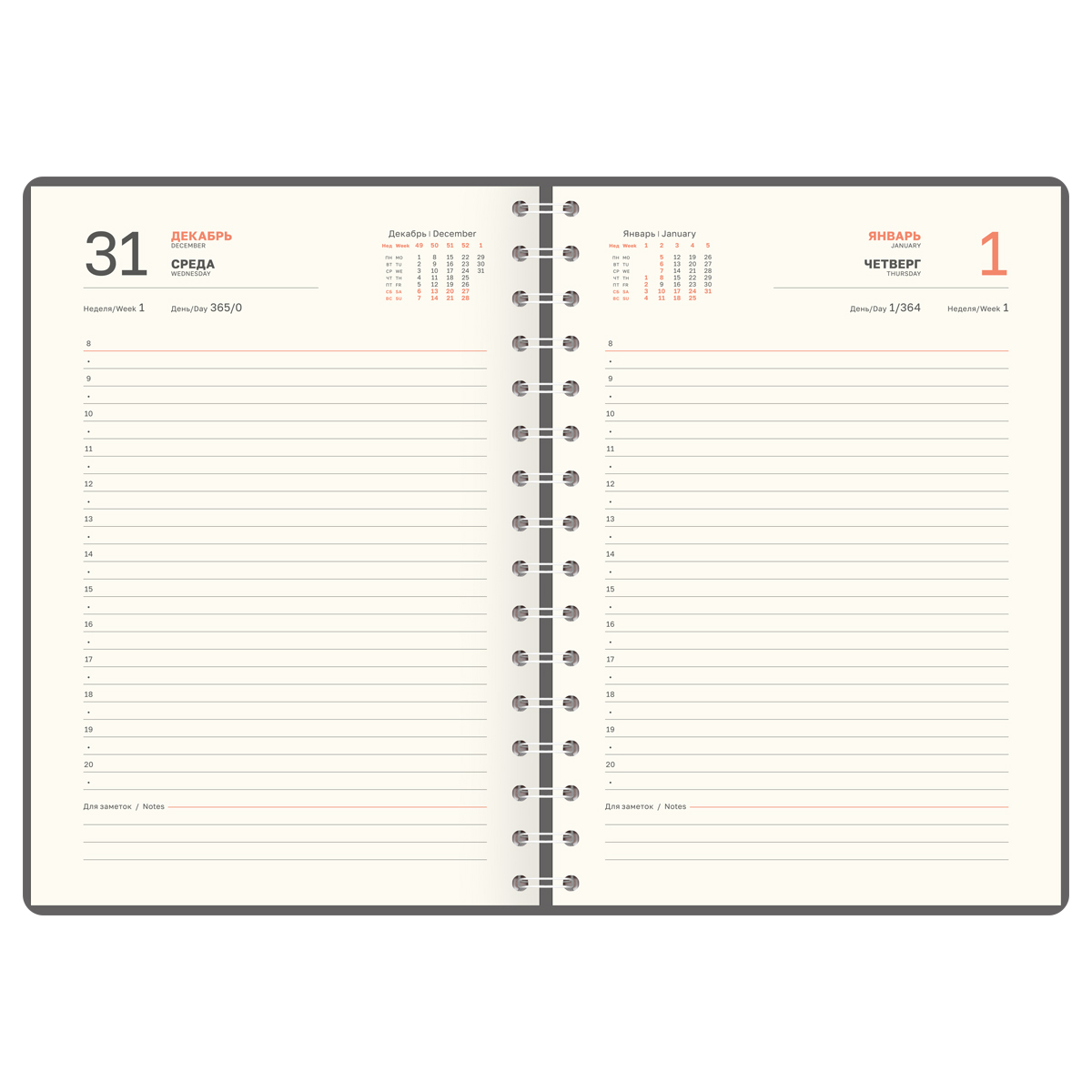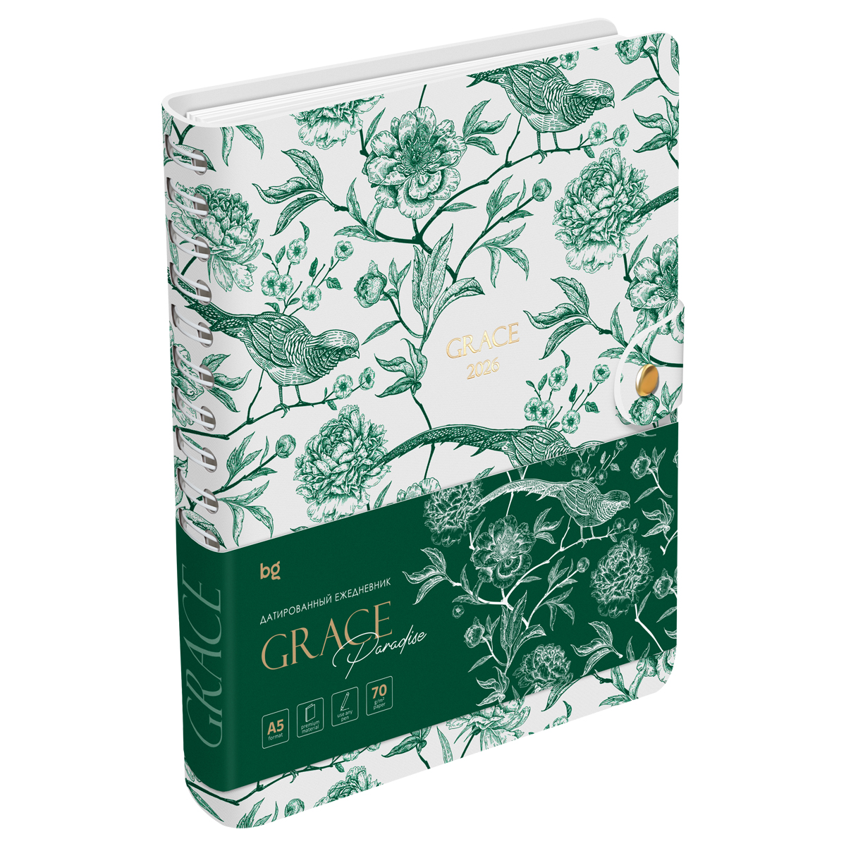 Ежедневник датированный 2026г., А5, 176л., мягкий переплет, экокожа, BG "Grace. Paradise", на гребне