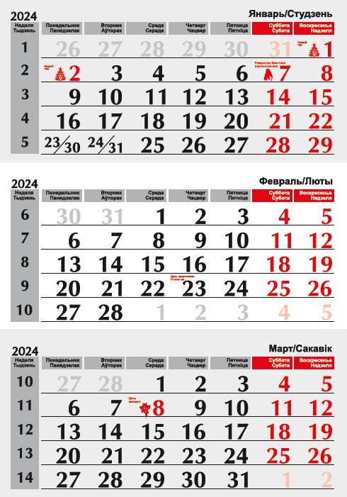 Вид календаря Квартальный Формат A4 (210 x 297 мм) Цвет С рисунком Ориентация Вертикальная Страна производитель Беларусь