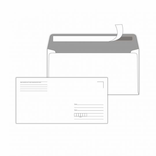 Конверт бумажный E65 (110*220мм) силикон., с л/п, с вн/зап