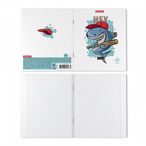 Тетрадь общая ученическая ErichKrause Crazy Shark, 48 листов, клетка, выборочный УФ-лак_MIX-PACK