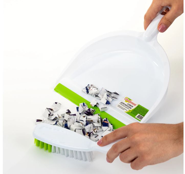 Совок со щеткой-сметкой ЛЮБАША незаменим при уборке помещений и позволяет аккуратно собрать мелкий мусор на полу.