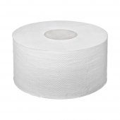 Однослойная туалетная бумага на втулке, без перфорации с тиснением, белого цвета. Материал — целлюлоза. Длина намотки — 200 метров.