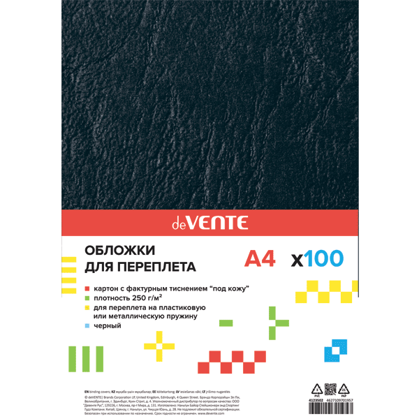 Обложка для переплета "deVENTE для оформления документов. Delta" A4, картон с тиснением "кожа" чёрного цвета, плотность 250 (230) г/м², 100 л