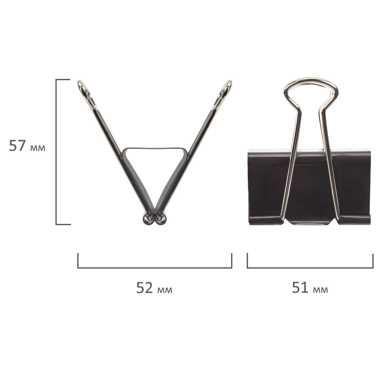 Представленные в комплекте зажимы для бумаг удерживают до 230 листов. Классического типа и черного цвета, изготовленные из стали, они сочетаются со строгой деловой обстановкой, не перетягивают на себя внимание. Широко используются в офисной и учебной деятельности. Ширина изделия - 51 мм.Характеристики