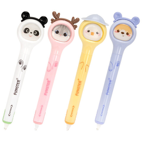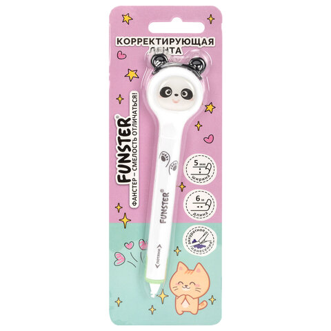 Корректирующая лента FUNSTER – это незаменимый помощник для мгновенного исправления рукописных и печатных текстов. Чудесные и милые зверята радуют глаз и делают ленту идеальным выбором для использования в школе, офисе и дома.
