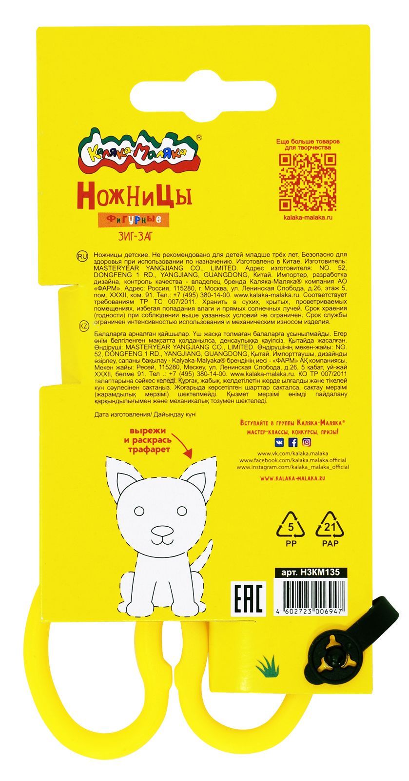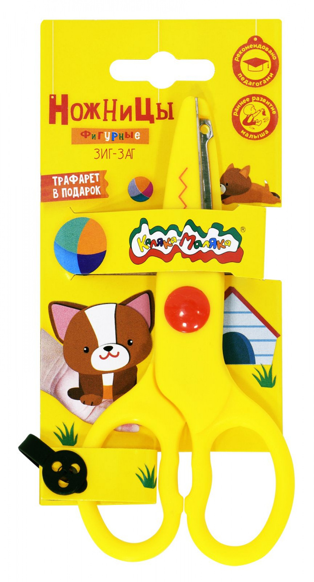 Ножницы детские Каляка-Маляка фигурные ЗИГЗАГ, безопасные 135мм, ручки пластиковые желтые, при использовании оставляют линию ЗИГ-ЗАГ