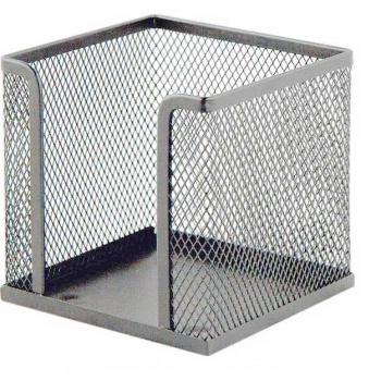 Подставка изготовлена из перфорированного металла (металлической сетки). Подходит для хранения бумажных блоков. Компактно располагается на столе.