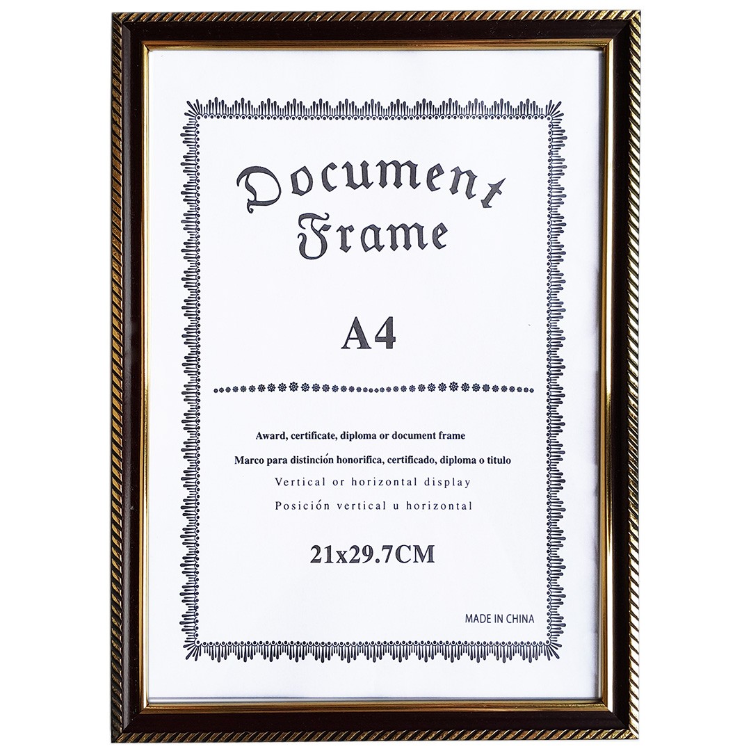 Рамка пластиковая со стеклом 21х29.7, темный орех с двойной позолотой, GROSS
