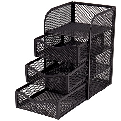 Предназначен для организации пространства на рабочем столе. Органайзер на 4 отделения с 3 выдвижными ящичками. Цвет: чёрный. 12,2*20*12,5см. Упаковка-кар. коробка.21,2*13,5*13см