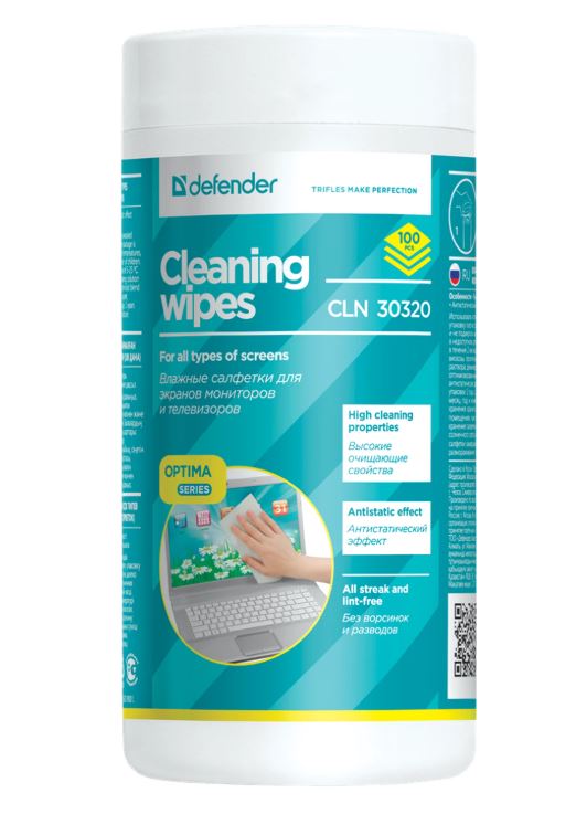 Чистящие салфетки Defender CLN30320 предназначены для ухода за экранами всех видов (экраны мониторов с электронно-лучевыми трубками, жидкокристаллическими экранами, плазменными панелями), а также стеклянными частями сканеров и копиров.