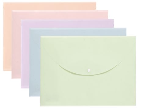 Папка-конверт на кнопке Deli Colorful ассорти пастель, А4 330*237 мм, 8мм, 0.16мм, полипропилен
