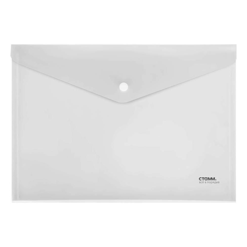 Папка-конверт на кнопке СТАММ, A4, 180мкм, прозрачная