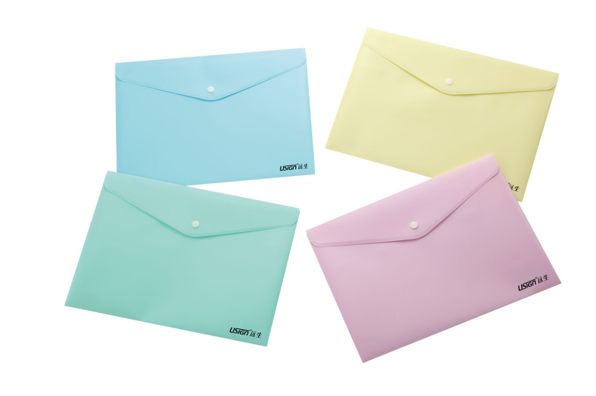 Папка-конверт изготовлена из плотного пластика толщиной 180мкм. Красивые пастельные цвета. Папка плотно закрывается на кнопку. Удобна для хранения и переноски документов, предотвращает их смятие и загрязнение. Формат А4
