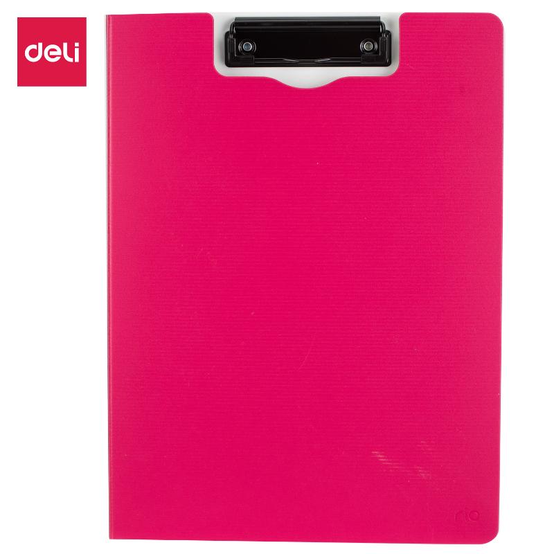 Папка-планшет (с крышкой) Deli «Rio», А4, плотная 2мм, с верхним прижимом, ПВХ, розовая из плотного двухстороннего пластика, не ломается и не прогибается.