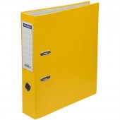 Папка-регистратор OfficeSpace изготовлена из плотного картона с покрытием из бумвинила желтого цвета. Два металлических кольца надежно закрепляют листы и файлы, не позволяя теряться важным документам. Внутренняя часть папки оклеена бумагой, есть поля для записей. Ширина корешка 70 мм. На корешке есть кармашек с информационной листовкой.