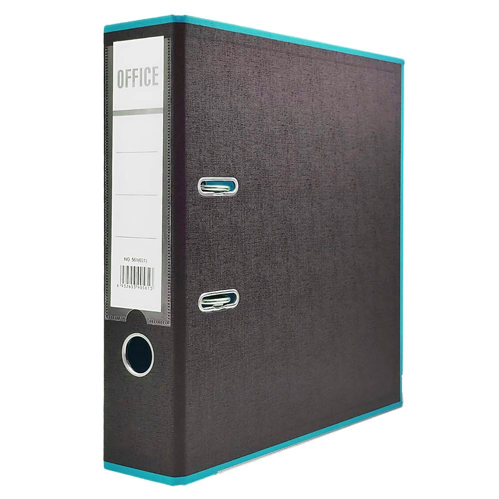 Папка-регистратор Moya формата А4. Ширина корешка составляет 75 мм. Двухцветная папка изготовлена из жёсткого износостойкого картона с двухсторонним покрытием из ПВХ. Нижние грани укреплены металлическим кантом.