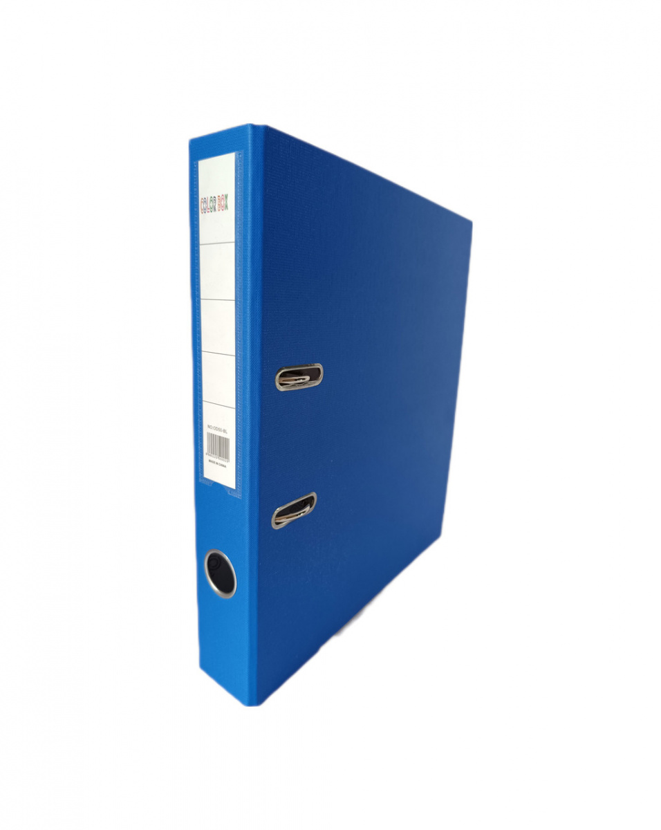 Папка-регистратор COLOR BOX А4 формата, цвет синий, с корешком шириной 75 и 50мм, снабжен сменной этикеткой для подписи и удобным окошком для выемки с полки. Толщина картона 2.2мм.