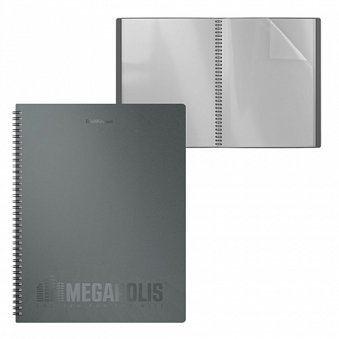 Папка файловая пластиковая на спирали ErichKrause MEGAPOLIS, c 40 карманами, A4, серый (в пакете по 4 шт.)
