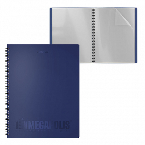 Папка файловая пластиковая на спирали ErichKrause MEGAPOLIS, c 40 карманами, A4, синий (в пакете по 4 шт.)