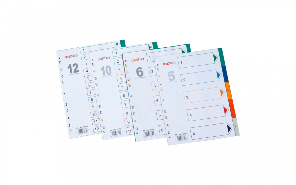 Разделитель листов А4, цифровой 1-10, цветной, пластиковый, арт.US-010