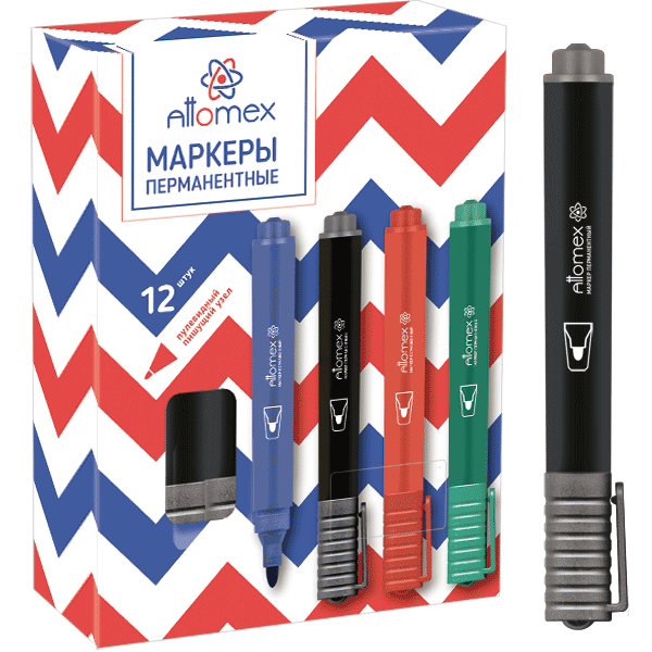 Перманентный маркер для нанесения надежных долговечных надписей на различные поверхности: пластмассу, стекло, бумагу, резину, дерево, камень, кожу и др. Линия письма четкая, однородная. Чернила быстросохнущие, светоустойчивые, без резкого запаха. Маркер представлен в классическом утолщенном корпусе с оригинальным ребристым колпачком с клипом. Цвет колпачка соответствует цвету чернил. Наконечник - круглый (пулевидный). Относится к серии "эконом"