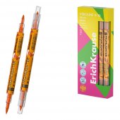 Двухсторонний текстмаркер ErichKrause Visioline V-16 Brush Neon, цвет чернил оранжевый - это маркер-текстовыделитель с двусторонний с кистью