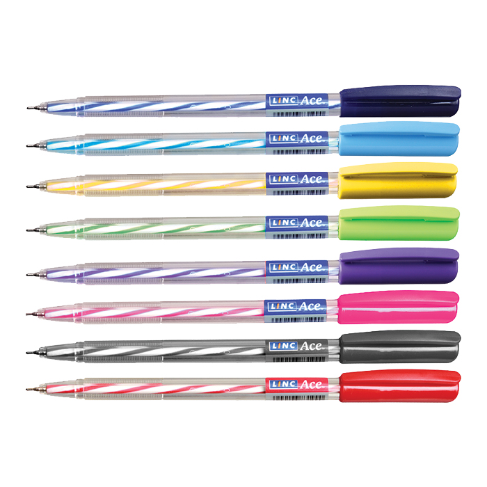 Ручка шариковая Linc «Ace», 0,6 мм, стержень синий, имеет оригинальный корпус, выполненный из прозрачного пластика с просвечивающимся через него ярким, полосатым стержнем. Наконечники и колпачки могут быть разных цветов. Тип пишущего наконечника - игла. Пишущий узел – 0,6 мм. Длина стержня – 132 мм.