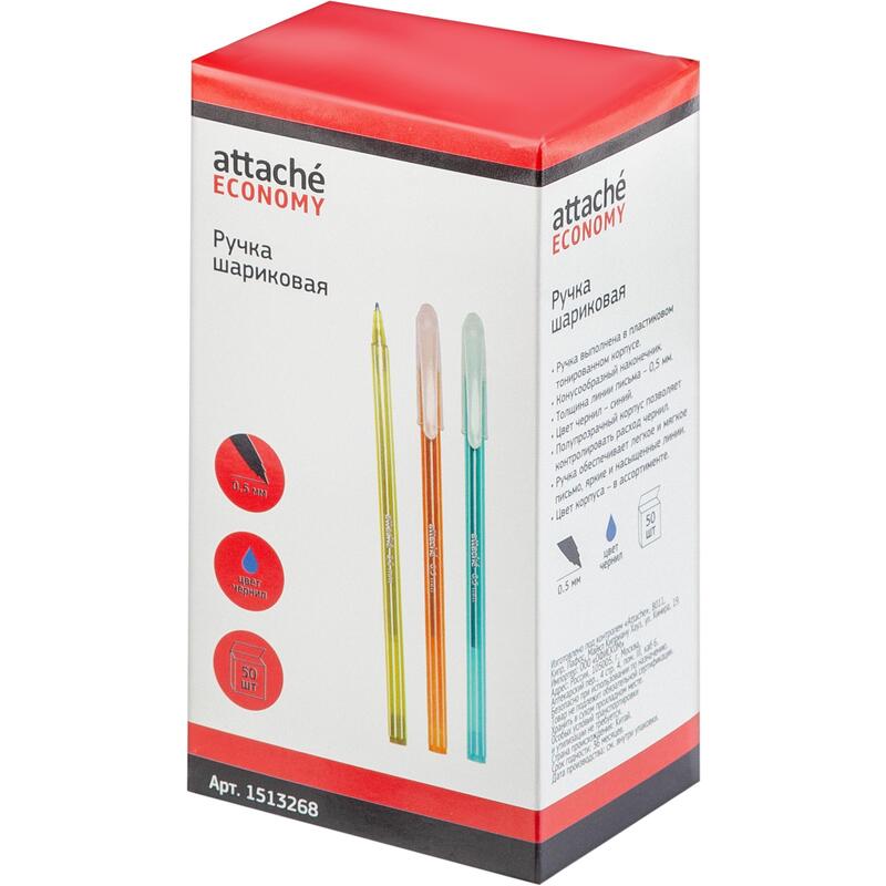 Ручка шариковая неавтомат. Attache Economy цвета корп в асс.,линия0.5мм,син