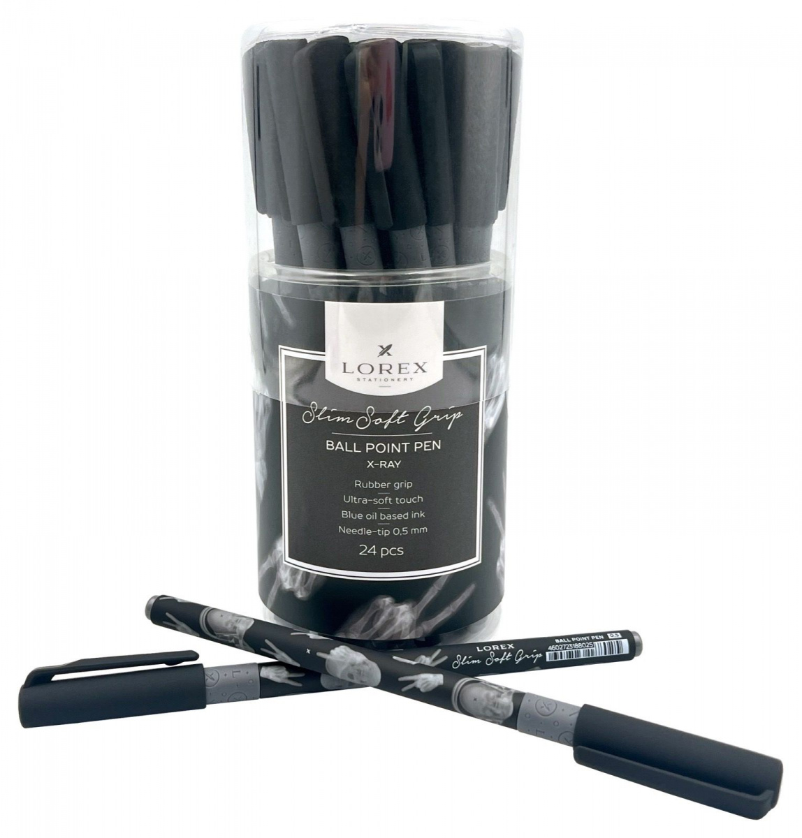 Ручка шариковая на масляной основе LOREX X-RAY Slim Soft Grip синяя 0,5 мм, ассорти круглый корпус, ultra-soft touch, игольчатый наконечник