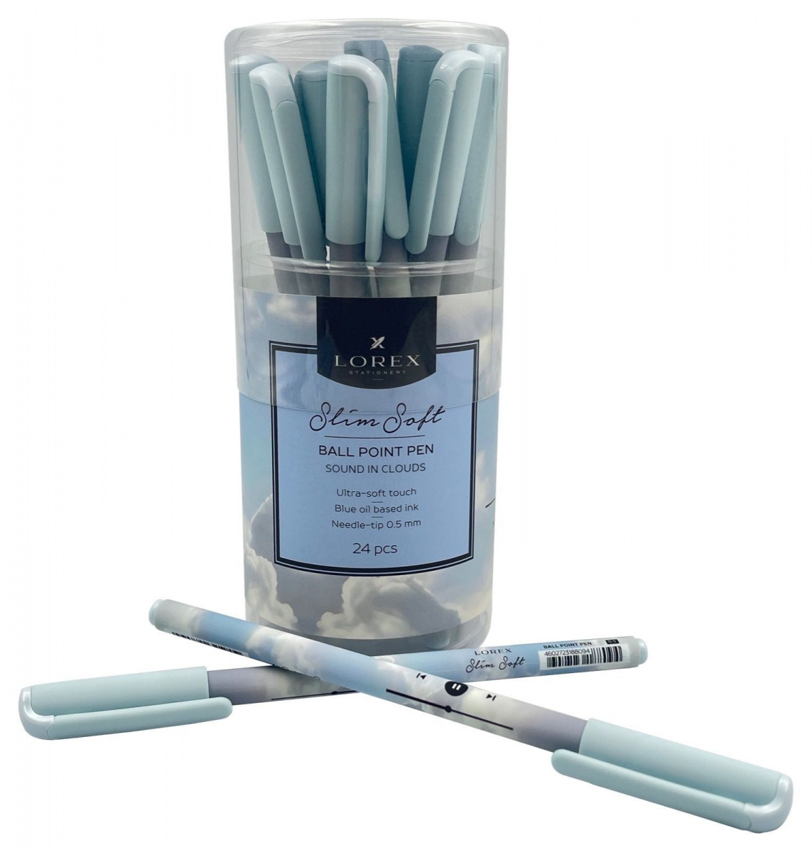 Ручка шариковая на масляной основе LOREX SOUND IN CLOUDS Slim Soft синяя 0,5 мм, ассорти круглый корпус, ultra-soft touch, игольчатый наконечник
