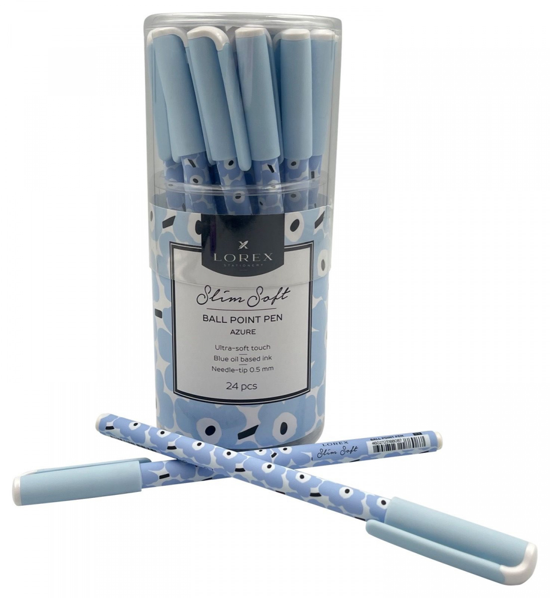 Ручка шариковая на масляной основе LOREX AZURE Slim Soft синяя 0,5 мм, ассорти круглый корпус, ultra-soft touch, игольчатый наконечник