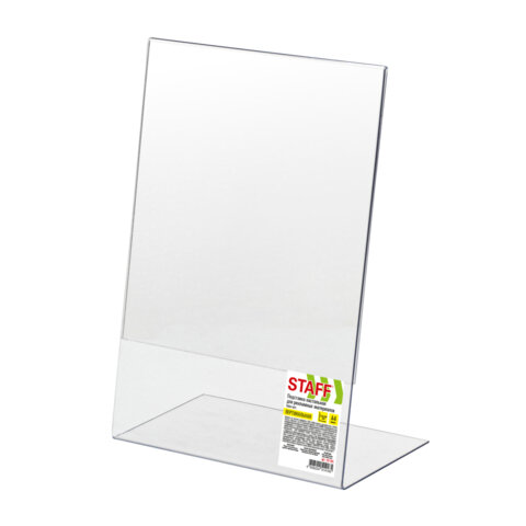Изготовлена из прочного прозрачного ПЭТ. Предназначена для настольного размещения. Формат – А4 и меньше. Максимальная высота вставляемого листа – 297 мм, максимальная ширина вставляемого листа – 210 мм.Характеристики