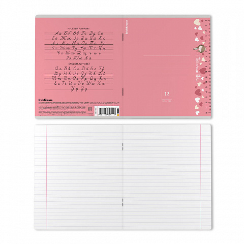 Тетрадь школьная ученическая формата А5+ (170х203 мм). Обложка из высококачественного мелованного картона плотностью 170 г/м2. В блоке 12 листов в линейку с полями. Бумага офсетная плотностью 60 г/м2. Цвет линовки - синий. Скругленные уголки обложки и блока. Тип скрепления - скоба. Тетради одного дизайна упакованы в термоусадочную пленку по 10 штук.