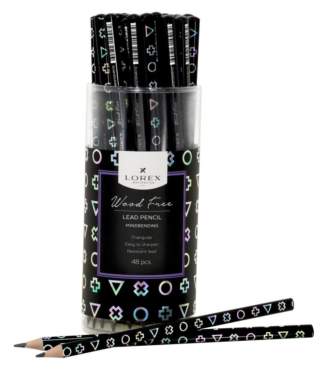 Карандаш чернографитный пластиковый LOREX WOOD FREE MINDBENDING НВ заточенный, трехгранный, принт на корпусе, тубус