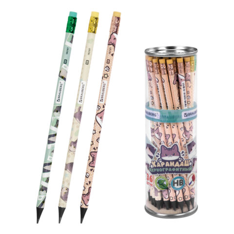 Карандаш чернографитный BRAUBERG "CUTE CATS" – первый помощник для выполнения различных заметок. Позволяет сделать легкий набросок, быстрый стремительный рисунок или нарисовать полноценную картину. Используется повсеместно.