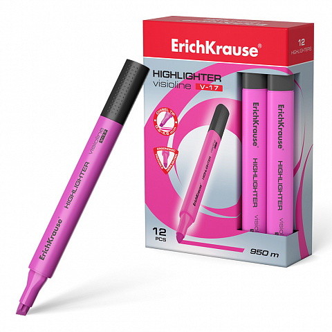 Текстмаркер ErichKrause Visioline V-17 Neon, цвет чернил розовый (в коробке по 12 шт.)